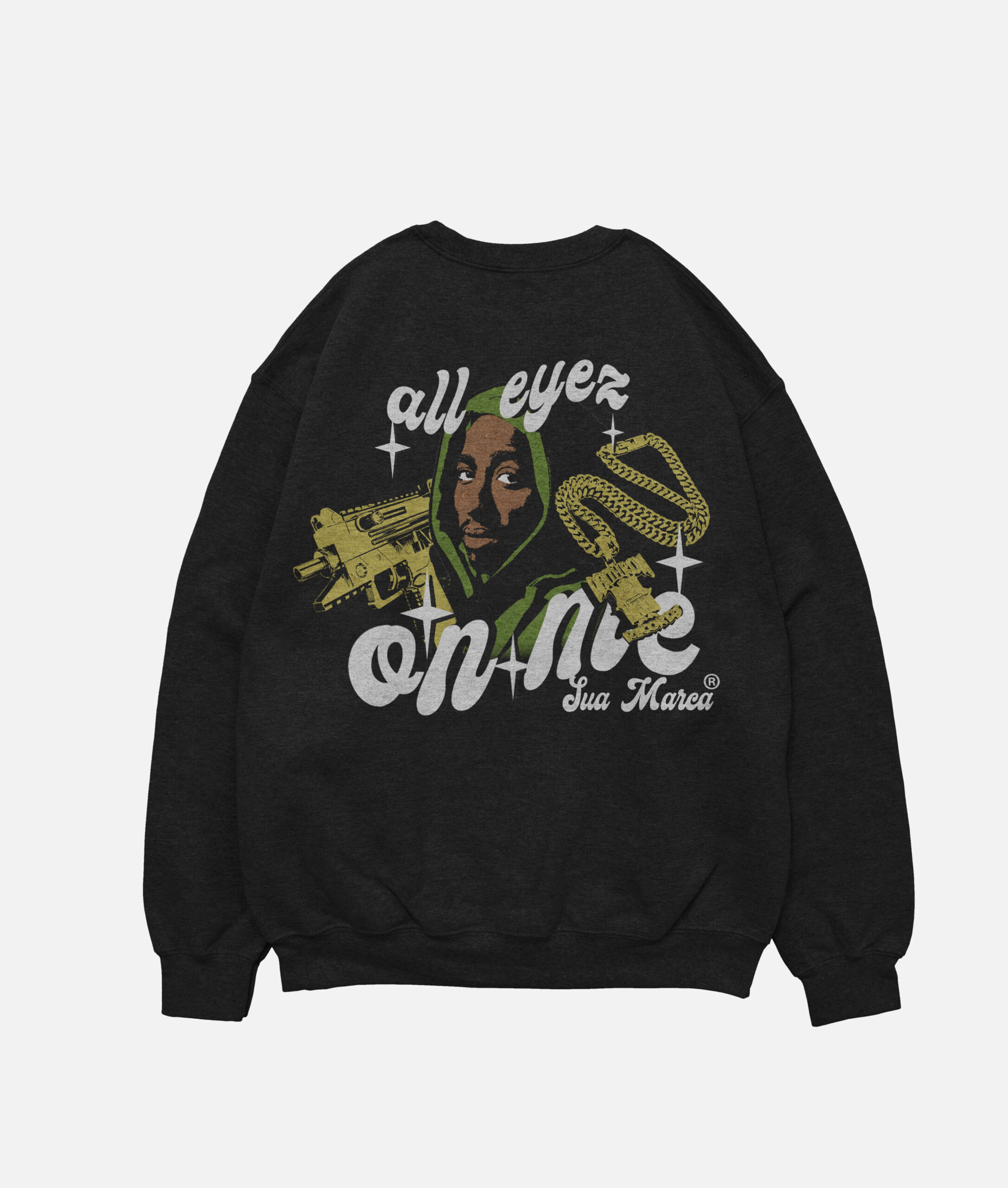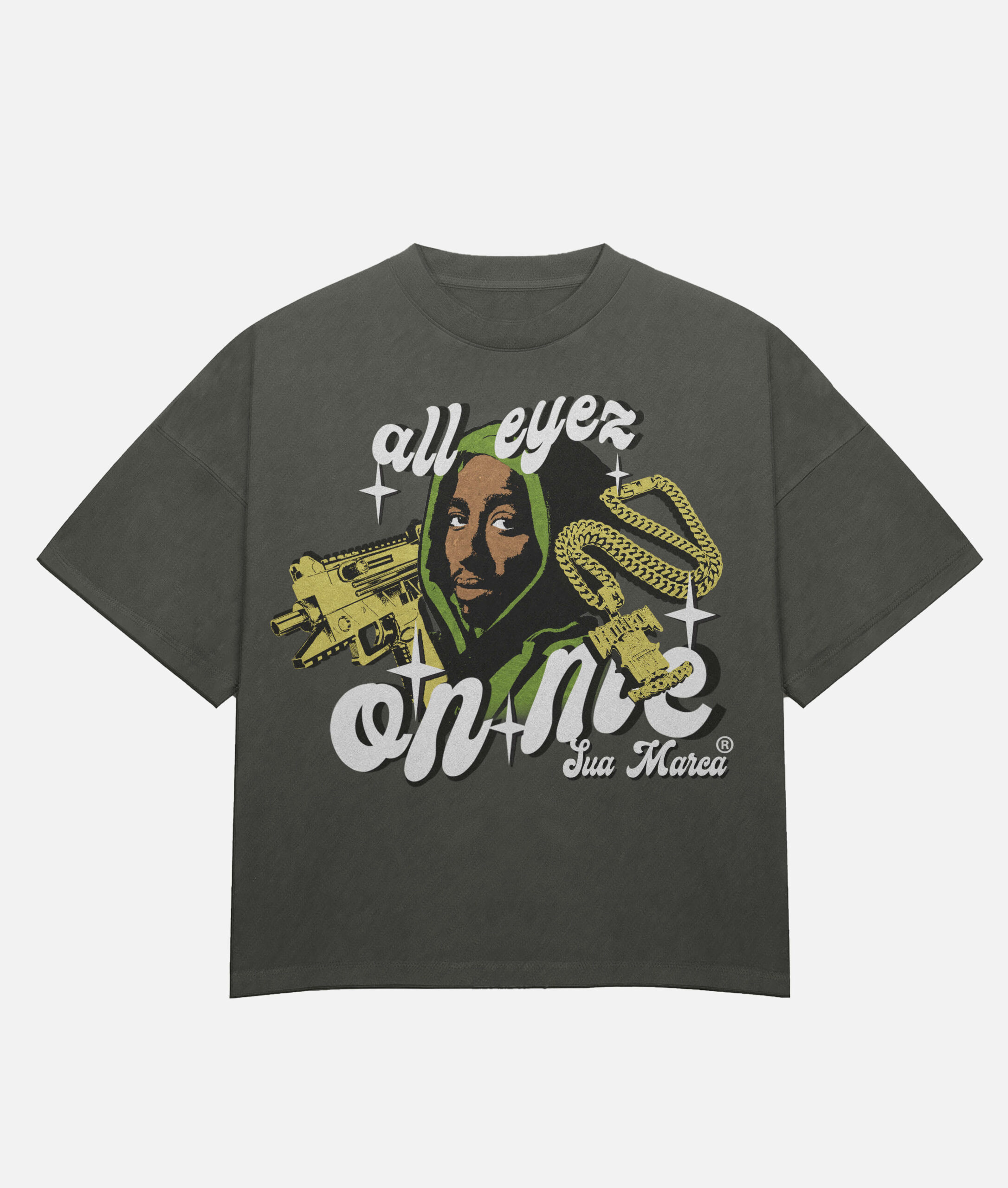 • Mockup de camiseta preta e branca na modelagem boxy com a estampa aplicada
